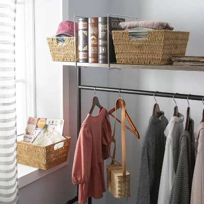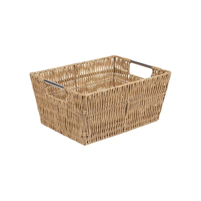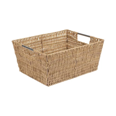 Organize and create storage in your home with the Simplify Rattan Tote Basket Collection. Simplify’s Rattan Tote is a PE Basket with an iron frame and 2 sturdy stainless steel carry handles. It is strong and durable prolonging it’s life, and it’s lightweight design makes it easy to lift and carry. Fits any home decor with it’s wide selection of colors. Store your household belongings and organize space with these stylish baskets. stack them together in a corner of your craft area, home office or dorm to keep your essentials close at hand in an organized manner.