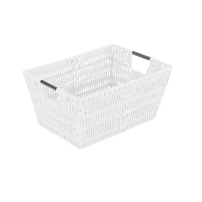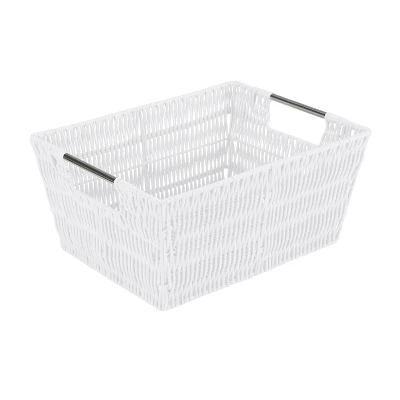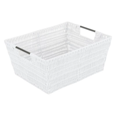 Organize and create storage in your home with the Simplify Rattan Tote Basket Collection. Simplify’s Rattan Tote is a PE Basket with an iron frame and 2 sturdy stainless steel carry handles. It is strong and durable prolonging it’s life, and it’s lightweight design makes it easy to lift and carry. Fits any home decor with it’s wide selection of colors. Store your household belongings and organize space with these stylish baskets. stack them together in a corner of your craft area, home office or dorm to keep your essentials close at hand in an organized manner.