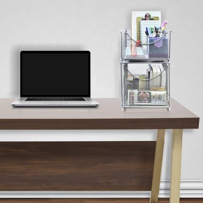 Are you tired of digging through cabinet clutter to find one simple item? Whether you’re storing special seasonings, everyday toiletries, or an overload of office supplies, the Sorbus 2-Tier Mesh Organizer Baskets maximizes your space so you can focus on what matters. The attractive 2-level design makes it perfect for the cabinet, countertop, pantry, vanity, workspace, and more. Create extra storage space virtually anywhere and bring items front and center with pull out sliding drawers.