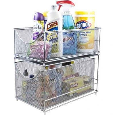 - MESH ORGANIZER BASKET DRAWER SET (SILVER, Bottom & Top) — Maximize space with a 2-level pull out organizer drawer set—Store a wide variety of items including kitchen utensils, toiletries, office supplies, cleaning products, crafting materials, accessories, and more in your kitchen, bathroom, or office