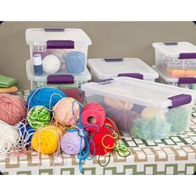 The 15 Quart ClearView Latch Box features ergonomic latches that attach the lid securely to the base, yet are still easy to unlatch. The see-through base and lid allow contents to be easily identified from any angle, and multiple bases are able to stack on top of each other. This latch storage box is ideal for storing blankets and other bulky items around the home. Sterilite ClearView Latch Boxes feature contemporary styling with ergonomic, color coordinated latches. The see through design allows for easy viewing of items. Indexed lids allow containers to stack securely for efficient storage. Common lids are used on select sizes to simplify and improve organization. Latch color adds visual appeal to everyday assortment.
