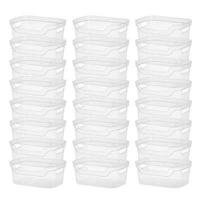 Whether you are cleaning up the kitchen pantry or bringing order to the bathroom closet the Sterilite 5.25 x 9.5 x 13 Inch Open Storage Bin with Carry-Through Handles will help you get the job done. This multipurpose bin provides the ideal space to store household items. Designed to help keep your frequently used belongings close at hand, from shower supplies in your dorm room to cereal boxes and canned goods in the pantry, you’ll love the simple organization this bin provides. The open design with a scoop front gives you easy access to items, and the carry-through handles make for comfortable transport, making this bin ideal for everyday use. The banded rim adds a stylish touch to the bin, and the modern design works well with any existing decor without the need for color matching or keeping unattractive bins out of sight. The polished sides and textured bottom are a breeze to clean, making maintenance completely hassle-free. Whether used in the bathroom, dorm room, office, or classroom, you’ll be able to access what you use most, effortlessly. Take a breath and enjoy the peace of ultimate organization with the Open Storage Bin with Carry-Through Handles from Sterilite.