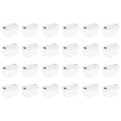 - LATCH CLIP BIN: Organize your home and keep clutter-free with the Sterilite 64-quart stackable storage containers with white lid and Sea Going blue hinged latch clips