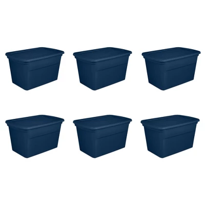 Compact storage is essential for seasonal goods. Providing plenty of space for efficient holding of blankets, towels, toys, and more, this 6-pack of the Sterilite Stackable 30-Gallon Storage Tote allows you to easily stow away all your possessions.With 18 gallons of interior space, the large-sized container perfectly holds bulky and large objects. Blankets, toys, towels, seasonal decorations, clothing, games, and other items fit neatly inside, letting you store them away without hassle. Solid, in-molded handles allow you to easily transport the tote anywhere, perfect for moving apartments or hauling it into the attic or basement. Entirely stackable, place one box on top of another to maximize your storage space.When storing, be sure to use good judgment and do not overload the boxes or stack them too high. Place the heaviest tote at the bottom for safer storage.Holding all your items and efficiently stowing them away, this 6-pack of the Sterilite Stackable 30-Gallon Storage Tote lets you effortlessly keep your home clean and organized.