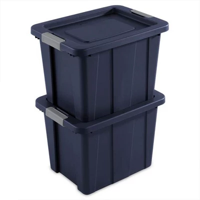Take advantage of that storage space in basements, garages, or attics with the 24-Pack of rugged Sterilite Tuff1 18-Gallon Storage Totes. These storage bins feature durability and strength for added peace of mind that contents will stay safely stored inside. The 18-gallon storage containers make a great solution for storing away camping supplies, sporting equipment, and seasonal items in more challenging environments. Made from polyethylene plastic, these storage totes are rugged and impact resistant even in colder temperatures, making them ideal for more active storage needs. Contoured end panels and integrated handles make for a comfortable grip when carrying. The deeply recessed lids allow multiple storage totes to stack securely for efficient use of vertical space. The channeled walls and thick reinforced rim provide added strength and rigidity. The overall dimensions of each storage container are 23 inches long, 17.25 inches wide, and 16.63 inches tall.Take charge of the clutter and keep your items organized with the 24-Pack of Sterilite 18-Gallon Latching Tuff1 Tote.