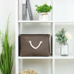 PiccoCasa Home Closet Clothes Box Cotton Fabric Decorative Storage Bins Small Chocolate Color 1 Pc
