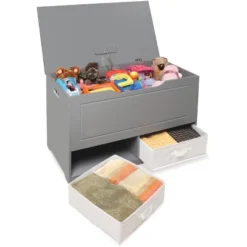 Vintiquewise Large Grey Storage Trunk Chest With Drawer Organizer And Handles For Easy Moving