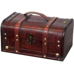 Vintiquewise Decorative Vintage Wood Treasure Box – Wooden Trunk Chest With Handle
